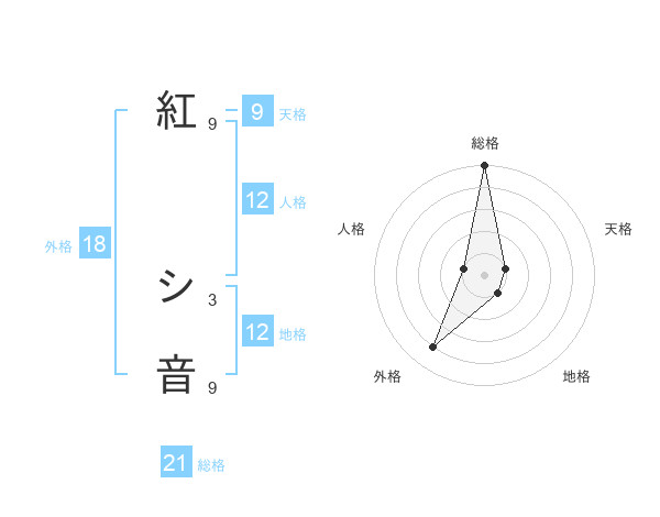 紅 シ音さんの総格は21画の5点!