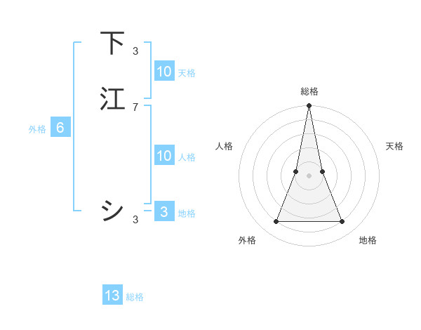 下江 シさんの総格は13画の5点!