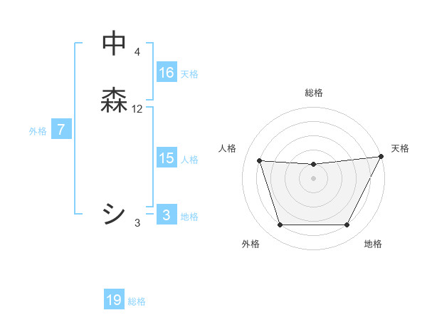 中森 シさんの総格は19画の1点!