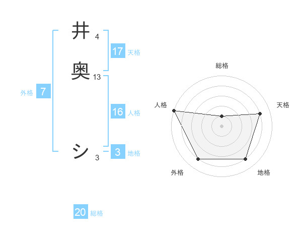 井奥 シさんの天格は17画の4点!