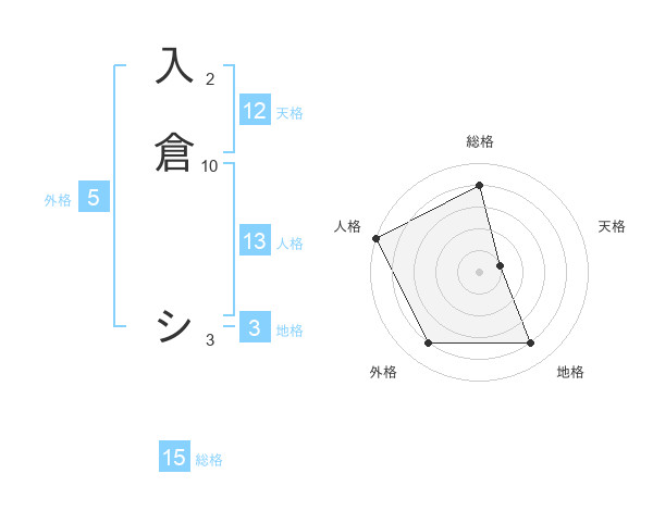 入倉 シさんの総格は15画の4点!