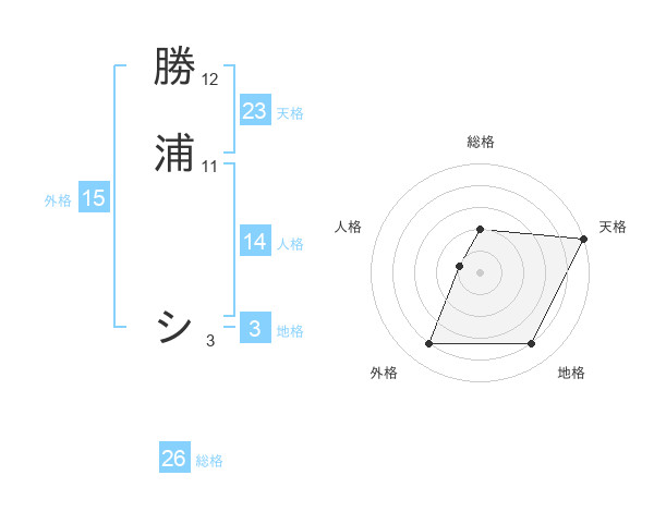 勝浦 シさんの天格は23画の5点!