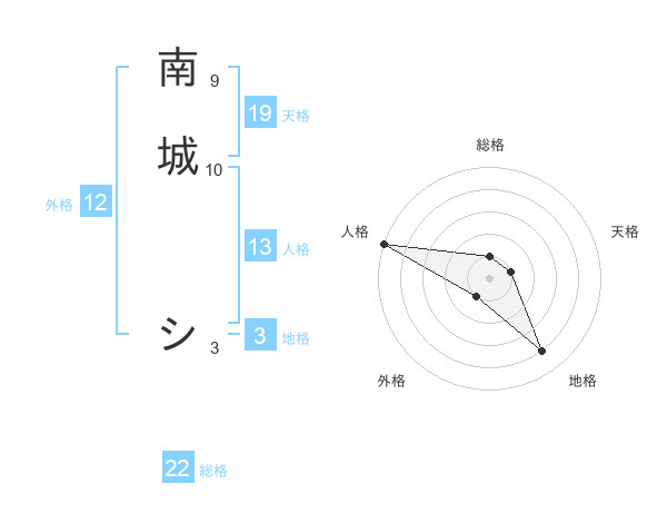 南城 シさんの総格は22画の1点!
