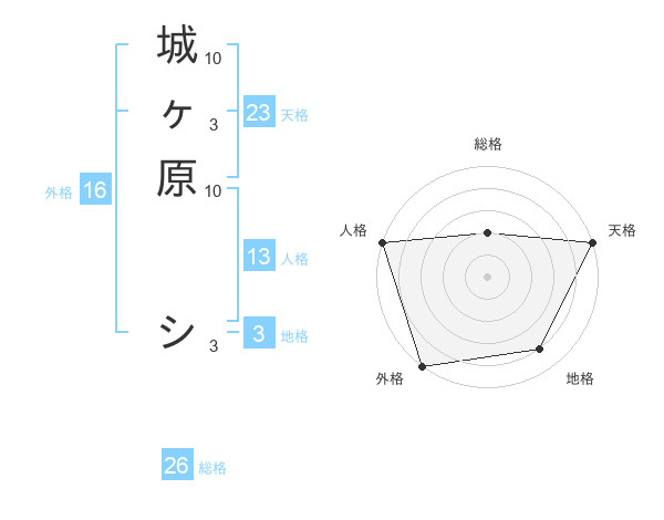城ヶ原 シさんの総格は26画の2点!