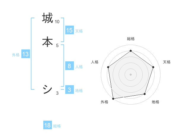 城本 シさんの外格は13画の5点!