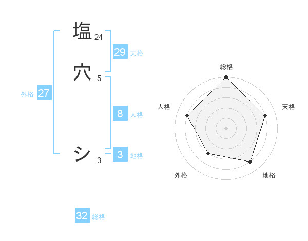 塩穴 シさんの総格は32画の5点!