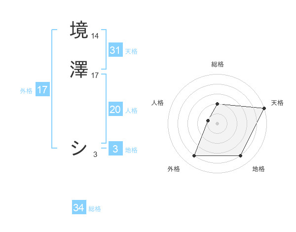 境澤 シさんの天格は31画の5点!