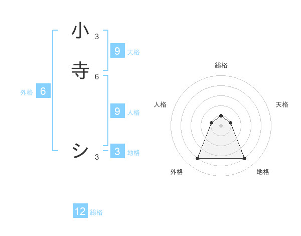 小寺 シさんの総格は12画の1点!