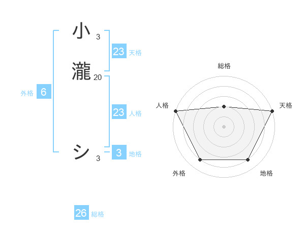小瀧 シさんの人格は23画の5点!