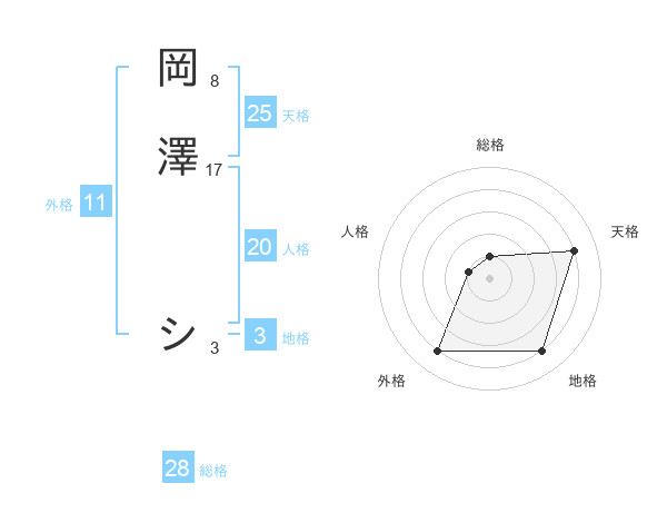 岡澤 シさんの外格は11画の4点!