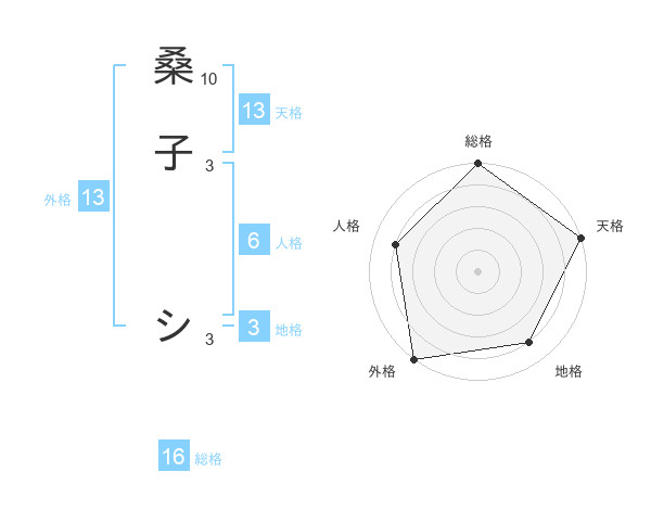 桑子 シさんの天格は13画の5点!