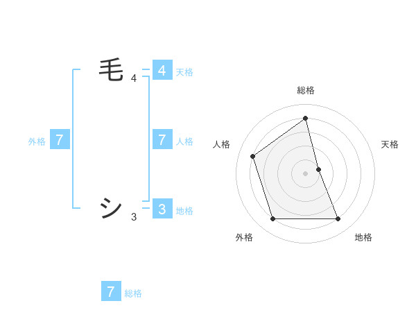 毛 シさんの総格は7画の4点!