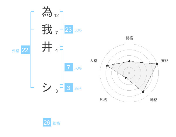 家系が持つ宿命的な運勢を表します。祖先から受け継いだ苗字ですので自分の力が及びません。家柄を象徴します。