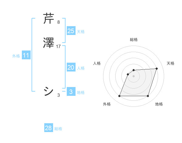 芹澤 シさんの天格は25画の4点!