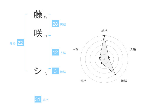 藤咲 シさんの総格は31画の5点!