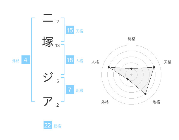 二塚 ジアさんを姓名の画数から五運を鑑定