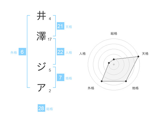 井澤 ジアさんを姓名の画数から五運を鑑定