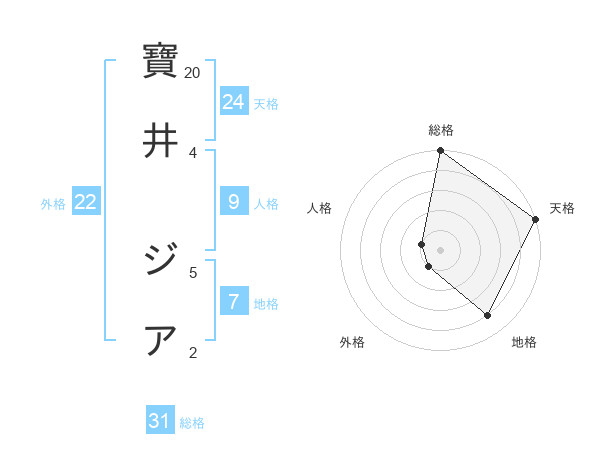 寶井 ジアさんを姓名の画数から五運を鑑定