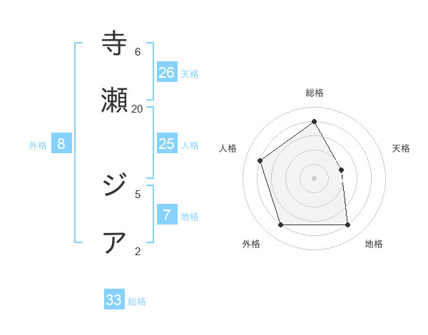 寺瀬 ジアさんを姓名の画数から五運を鑑定