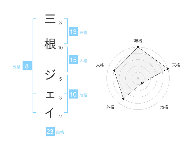 三根 ジェイさんを姓名の画数から五運を鑑定