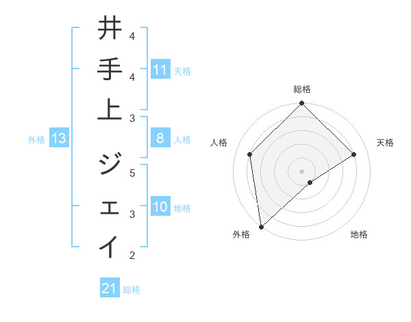 井手上 ジェイさんを姓名の画数から五運を鑑定