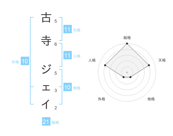 古寺 ジェイさんを姓名の画数から五運を鑑定