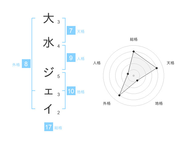 大水 ジェイさんを姓名の画数から五運を鑑定