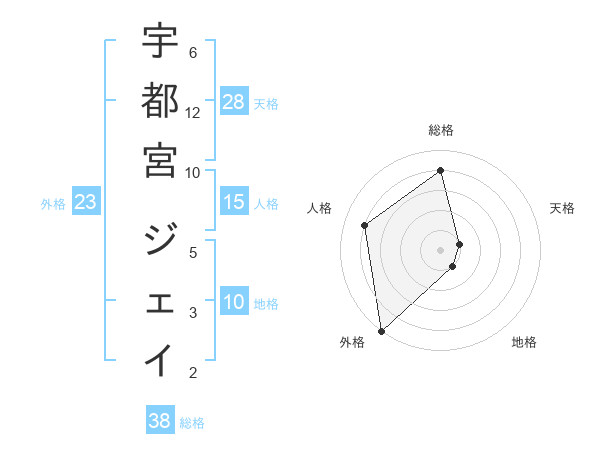 宇都宮 ジェイさんを姓名の画数から五運を鑑定