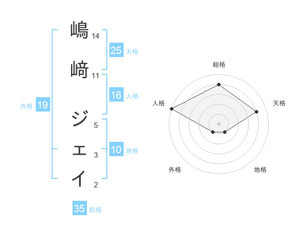 嶋﨑 ジェイさんを姓名の画数から五運を鑑定