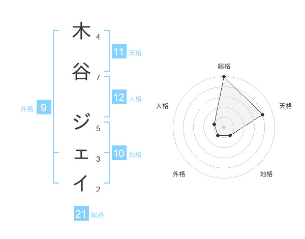 木谷 ジェイさんを姓名の画数から五運を鑑定