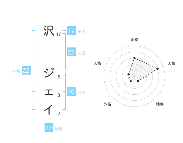 沢 ジェイさんを姓名の画数から五運を鑑定