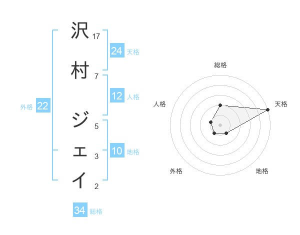 沢村 ジェイさんを姓名の画数から五運を鑑定