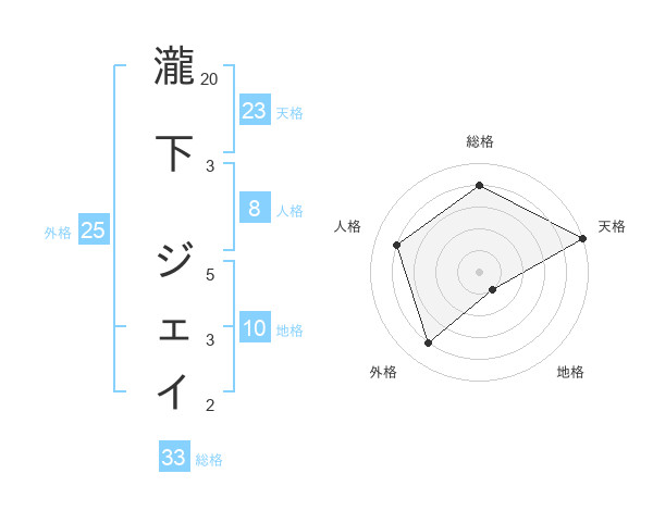 瀧下 ジェイさんを姓名の画数から五運を鑑定
