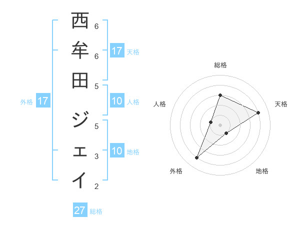 西牟田 ジェイさんを姓名の画数から五運を鑑定