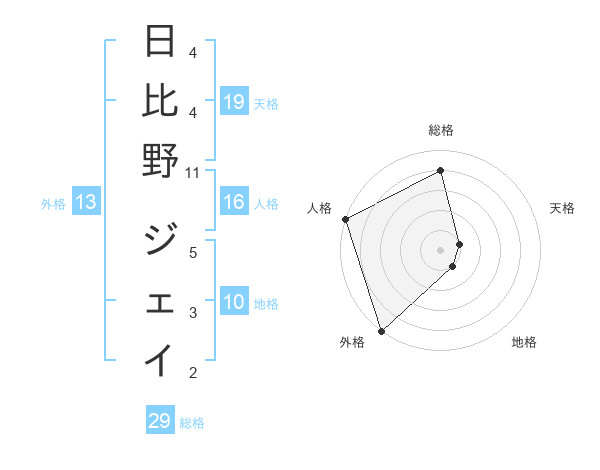 日比野 ジェイさんを姓名の画数から五運を鑑定