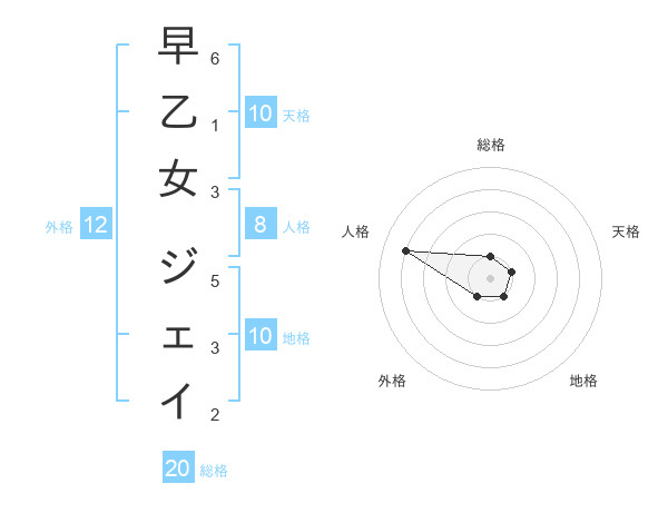 早乙女 ジェイさんを姓名の画数から五運を鑑定