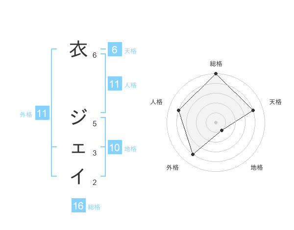衣 ジェイさんを姓名の画数から五運を鑑定