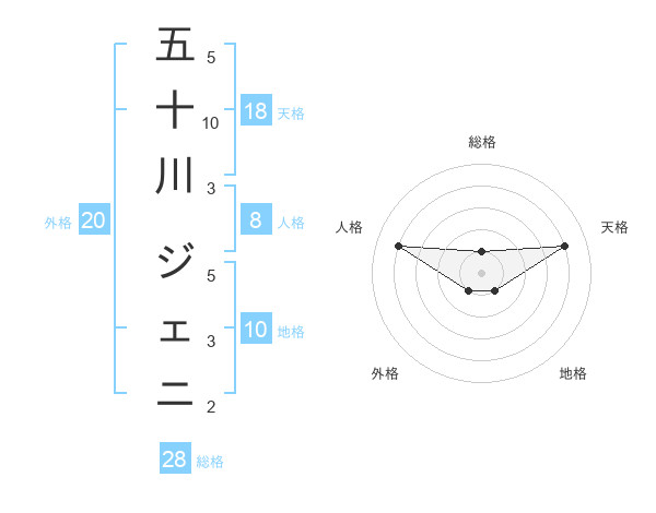 五十川 ジェニさんを姓名の画数から五運を鑑定