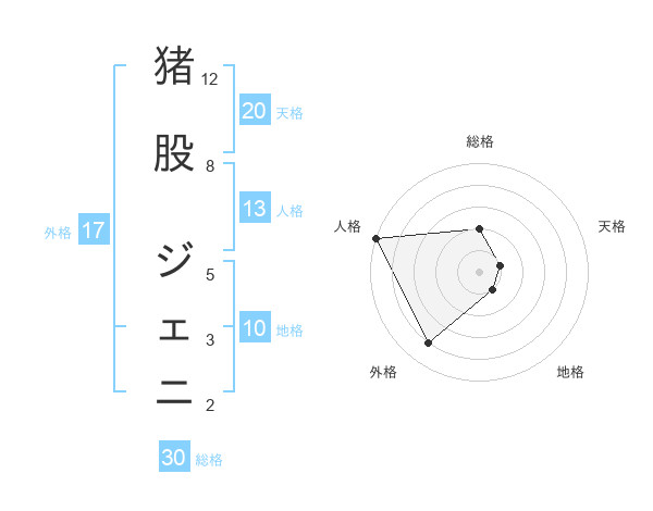 猪股 ジェニさんを姓名の画数から五運を鑑定