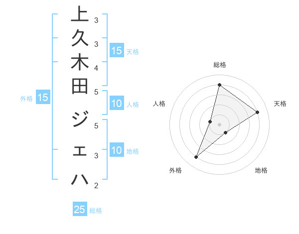 上久木田 ジェハさんを姓名の画数から五運を鑑定