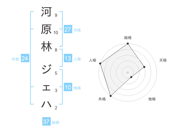 河原林 ジェハさんを姓名の画数から五運を鑑定