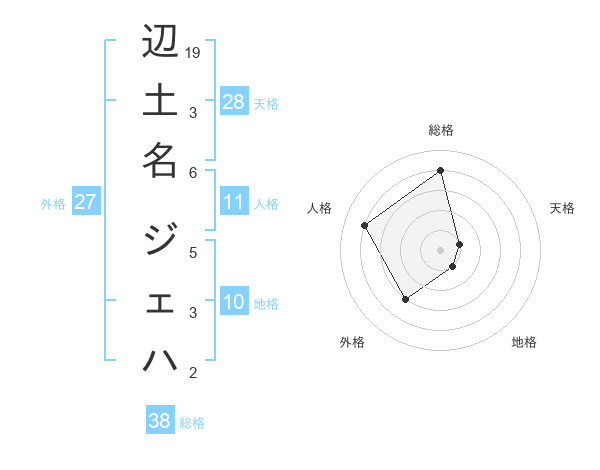 辺土名 ジェハさんの総格は38画の4点!