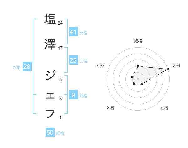 塩澤 ジェフさんを姓名の画数から五運を鑑定