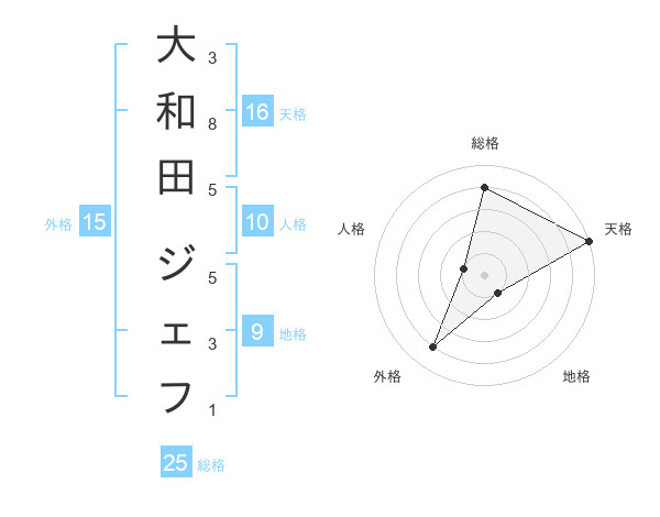 大和田 ジェフさんを姓名の画数から五運を鑑定