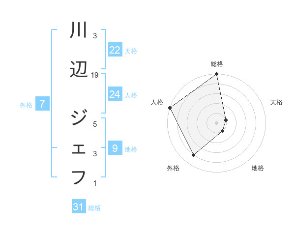 川辺 ジェフさんを姓名の画数から五運を鑑定