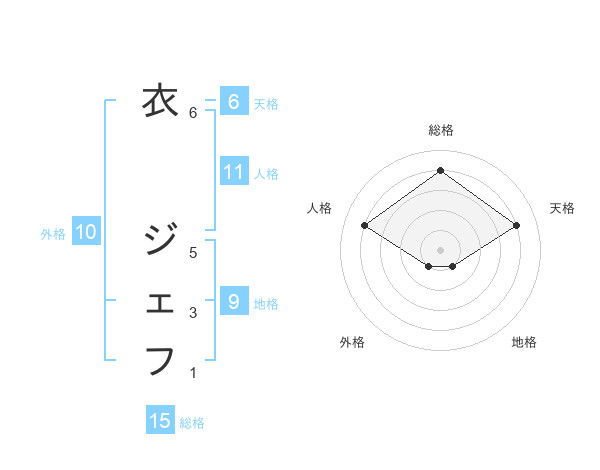 衣 ジェフさんの総格は15画の4点!