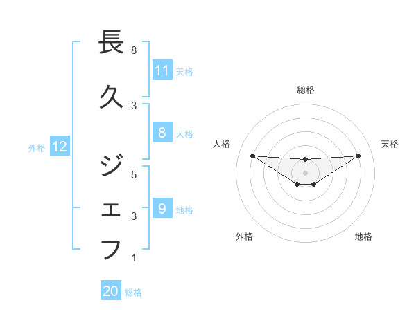 長久 ジェフさんの総格は20画の1点!