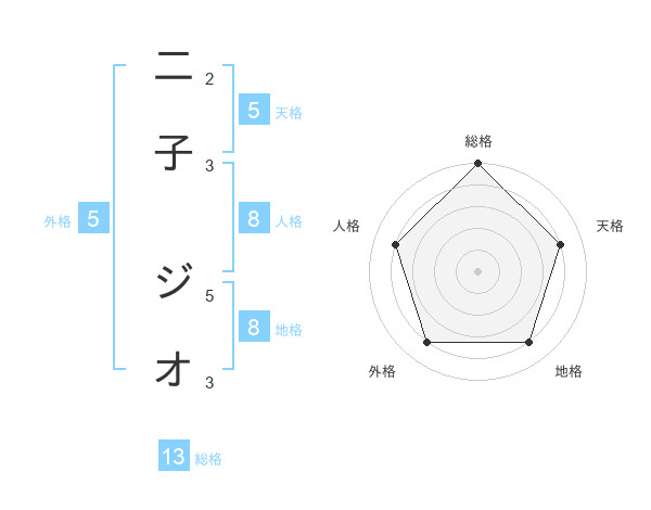 二子 ジオさんの総格は13画の5点!
