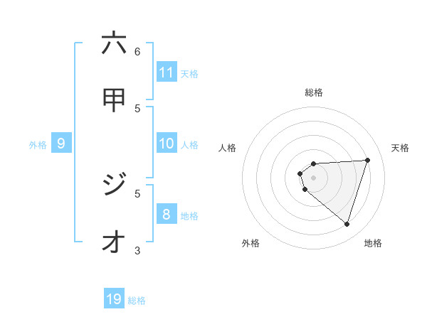 六甲 ジオさんを姓名の画数から五運を鑑定