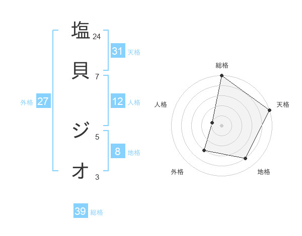 塩貝 ジオさんを姓名の画数から五運を鑑定